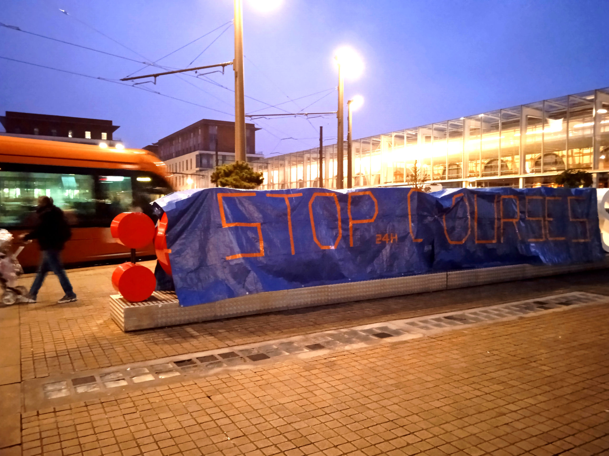 Bonjour, Ce mardi 24/01/23, une dizaine de militantes et militants du collectif Stop24H se sont retrouvé⋅es à 18h sur le parvis de la gare Nord au Mans pour recouvrir le sigle géant “Of Course Le Mans” de leurs revendications :…
